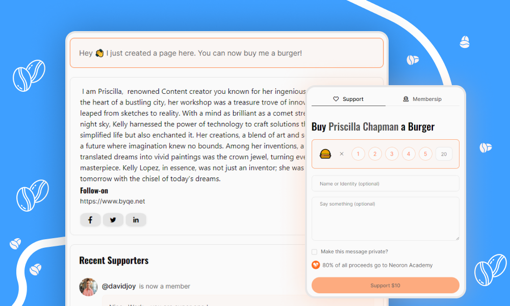 Embark on a journey towards accelerated growth with our crypto-platform - designed to be user-friendly, swift, and entirely free for all. Whether you're a creator, innovator, or supporter, our "PayMeCoffee" website simplifies the process of connecting and fostering a community dedicated to mutual success and inspiration.